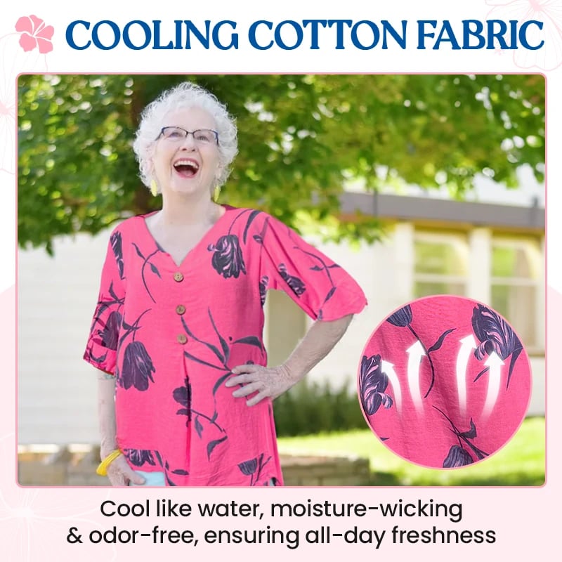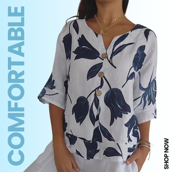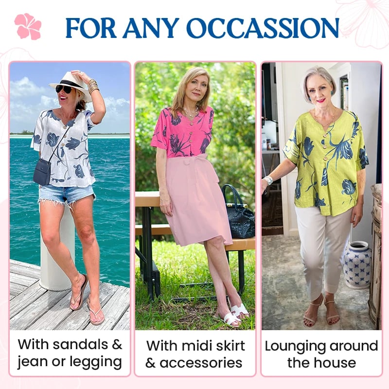 Enjoy the natural comfort, wear our printed cotton linen V-neck short sleeve, easy to meet the sunshine every day ☀️.