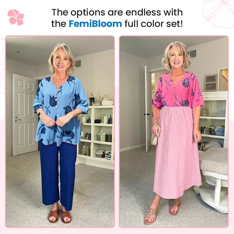 Tailored for You: Our commitment to a comfort fit ensures that each garment drapes beautifully, offering both ease and elegance. With FemiBloom, comfort doesn't compromise style; it enhances it, ensuring you look and feel your best in any setting.