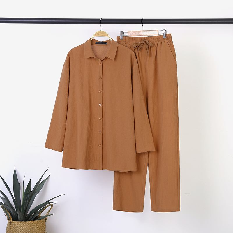 Package included:1 Suit Material:100% Cotton Colors:Yellow,Beige,Navy Sleeve Length:Full Sleeve Neckline:Turn-Down-Collar Pattern:Solid Color Length:Ankle Length Buckle chain:Button Down Front Thickness:Thin Features:Pure cotton Style:Leisure,Bohemian,Retro,Europe Season:Spring,Summer,Autumn Occasion:Family,Party,Beach,Wedding,Holiday Attentions: 1.The Real Object May Exist Slightly Colors Differences Compared To Images As Different Computers Display.Caution If Minding,Thanks. 2.There Might Be A Manual Measuring 1-3 cm Error.Sorry For Any Inconvenience. 3.Please Prevail On Real Item, Model Images For Reference Only. 4.Attention!!!Please check the size chart carefully before placing the order.| Size | US | UK | EUR | Shoulder width | Bust | Sleeve length | Clothing length | Waist circumference | Hip circumference | Pants length | | CM | CM | CM | CM | CM | CM | CM | | S | 4-6 | 10 | 36 | 48 | 99 | 52 | 71 | 62-77 | 101 | 96 | | M | 8-10 | 12 | 38 | 49 | 104 | 53 | 72 | 66-81 | 106 | 97 | | L | 12-14 | 14 | 40 | 50 | 109 | 54 | 73 | 70-85 | 111 | 98 | | XL | 16-18 | 16 | 42 | 51 | 114 | 54 | 74 | 74-89 | 116 | 99 | | XXL | 20-22 | 18 | 44 | 52 | 119 | 55 | 75 | 78-93 | 121 | 100 | | 3XL | 24-26 | 20 | 46 | 53 | 124 | 55 | 76 | 82-97 | 126 | 101 | | 4XL | 28-30 | 22 | 48 | 54 | 129 | 56 | 77 | 86-101 | 131 | 102 | | 5XL | 32-34 | 24 | 50 | 55 | 134 | 57 | 78 | 90-105 | 136 | 103 | | Plain measurement difference of 1-3cm normal |